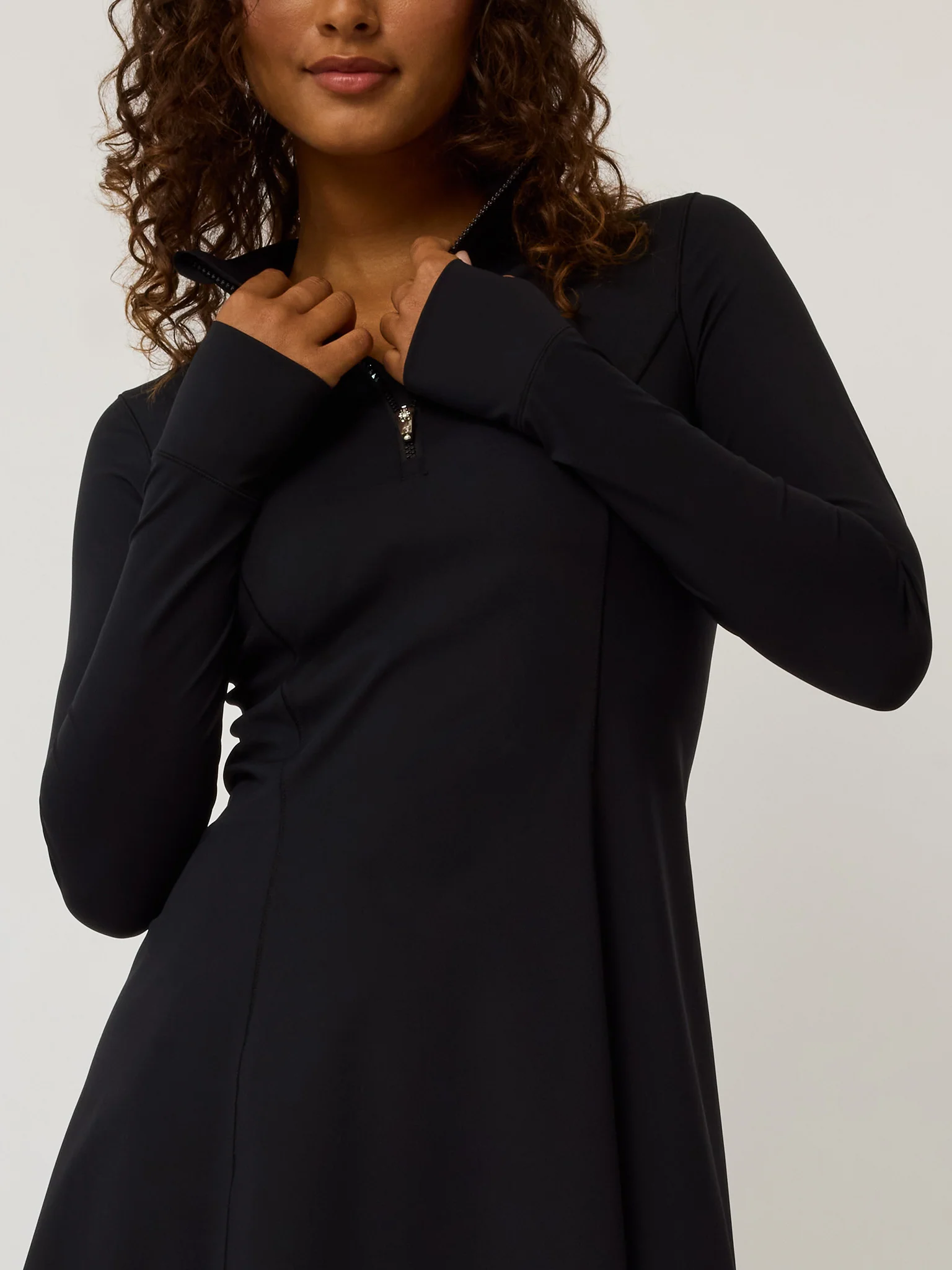 Designed for every aspect of your lifestyle, the Hera Long Sleeve Dress is made with luxurious Italian fabric that performs when you need it most. It is constructed with an athletic, slim fit, featuring a compression shortie that provides plenty of stretch and breathability throughout the day. Finished with a zippered closure on the front.